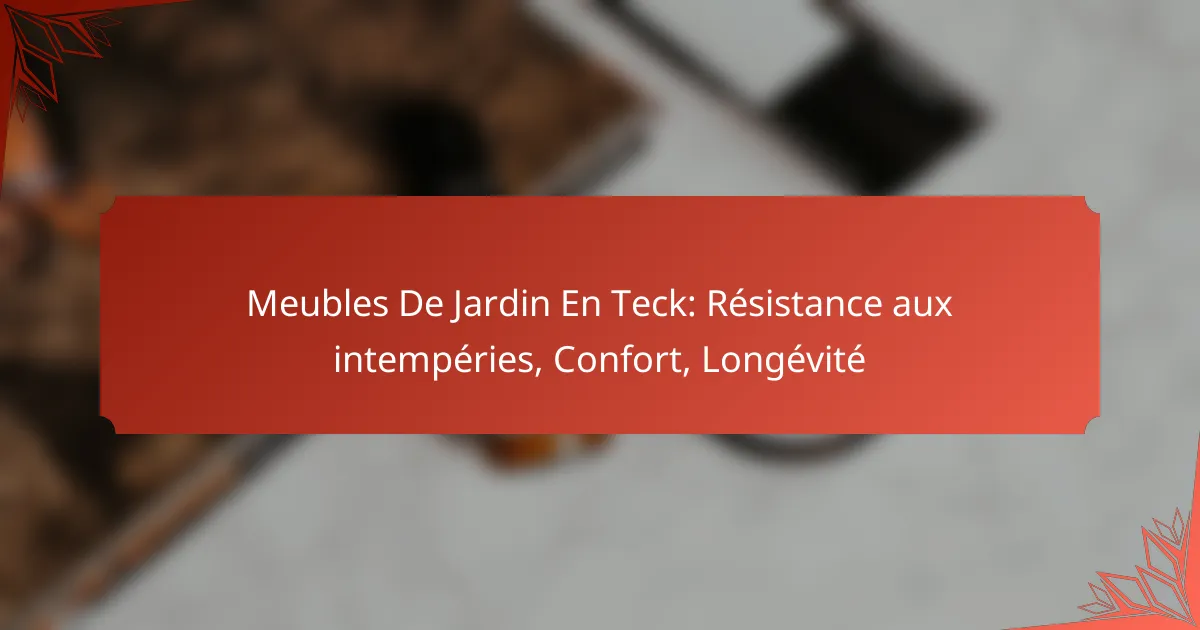 HomeAvantages des meubles en boisMeubles De Jardin En Teck: Résistance aux intempéries, Confort, Longévité Meubles De Jardin En Teck: Résistance aux intempéries, Confort, Longévité 18/12/2025 Lucie Morel Key sections in the article: Toggle Quels sont les avantages des meubles de jardin en teck ?Comment choisir des meubles de jardin en teck adaptés ?Quels sont les inconvénients des meubles de jardin en teck ?Où acheter des meubles de jardin en teck ?Comment entretenir des meubles de jardin en teck ? Quels sont les avantages des meubles de jardin en teck ? Comment choisir des meubles de jardin en teck adaptés ? Quels sont les inconvénients des meubles de jardin en teck ? Où acheter des meubles de jardin en teck ? Comment entretenir des meubles de jardin en teck ?